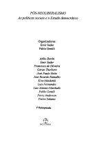 |  | Emir Sader, Pablo Gentili (orgs.). Pós-neoliberalismo: : as políticas sociais e o estado democrático. Rio de Janeiro: Paz e Terra, 2003. 205 p. |